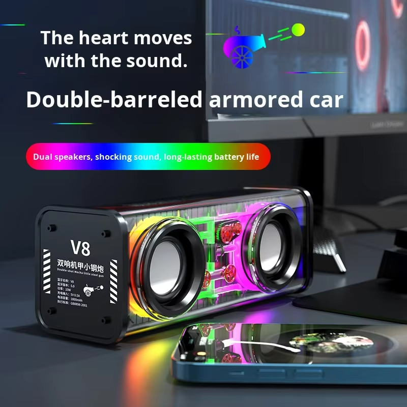 Heavy Bass Mecha Portable Desktop Bluetooth Speaker | 5W, RGB LED Lights