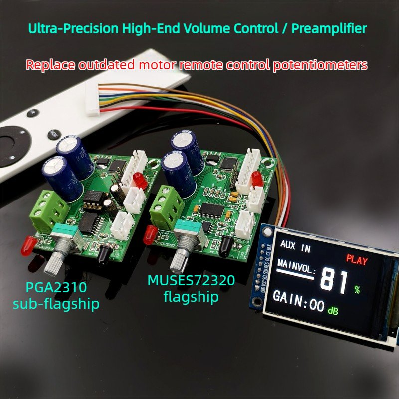 Note: The PGA2310 and MUSES72320 boards can be used as a volume potentiometer or as a preamp. When the GAIN is set to 0, the gain is 0 DB. This is equivalent to a pure potentiometer. When the GAIN is set to greater than 1, it can be used as a preamp, with a gain of 3-21 DB. There is no need to set it too high, otherwise the signal will be too strong and cause the rear stage to saturate. It is better to set it within 12 DB.